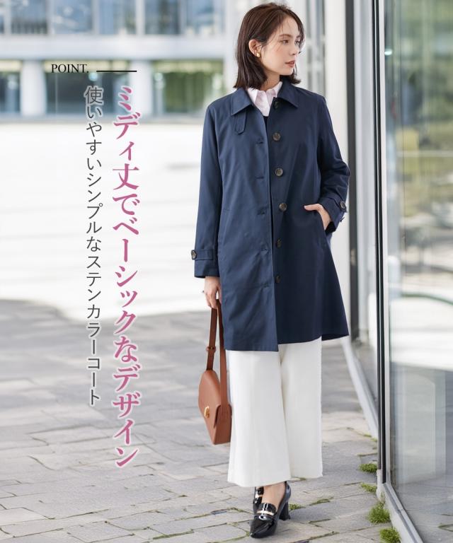 【着るだけ花粉対策!ステンカラーコート】コーデを選ばずベストマッチするシンプルな定番デザイン。1枚あると春が快適に。 ■ポイント ・花粉のつらい時期を快適にする花粉対策スプリングコート。 ・取り外し可能なライナー付きだから肌寒い時期から春まで長く着用OK。 ・昨年からシルエットを見直しよりスタイリッシュに着用出来るように改良しました ■デザイン ・ライナー付き:取り外し可能なライナーが付属しており、「花粉の季節も、きれいに軽やかに」着用できるため、寒い時期から春先にかけて長い期間活躍します。 ・長く使えてたっぷり着まわせる、定番デザイン。 ・ベーシックで使いやすいシンプルなミディ丈ステンカラーコート。 ■素材 ・花粉がつきにくい加工が施されており、花粉の季節のお悩み対策に役立ちます ・はっ水加工により、急な雨や水滴を弾き、汚れがつきにくいのも大きな魅力です。 ■おすすめのスタイリング ・白のボウタイブラウスにダークトーンのテーパードパンツを合わせ、このコートを羽織るだけで、上品で知的な通勤スタイルが完成します。黒やネイビーのバッグとヒールパンプスで引き締めるのがおすすめです。 ・コートのインナーをボーダーTシャツやシンプル