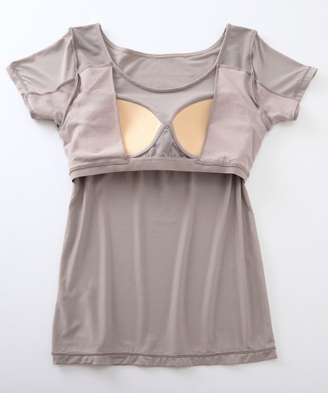 ブラトップ カップ付き レディース 滝汗さん 汗取り パッド 付 半袖 インナー 吸汗速乾 抗菌防臭 UVカット 春 夏 秋 肌着 女性 | LL/3L | ニッセン nissen