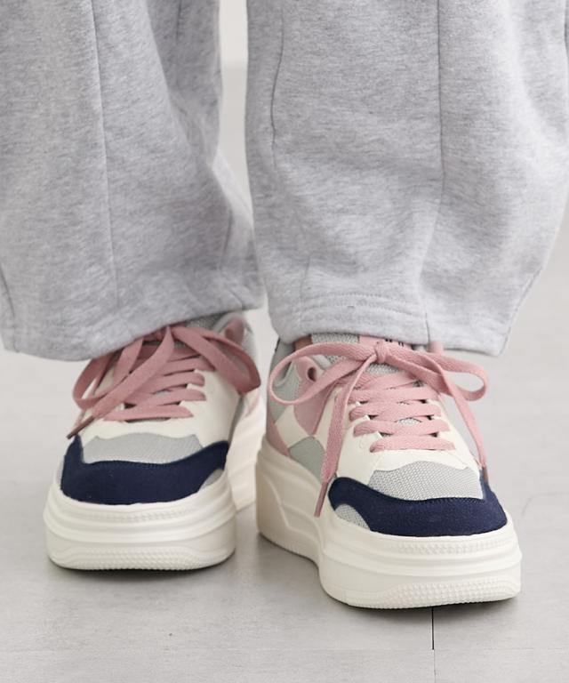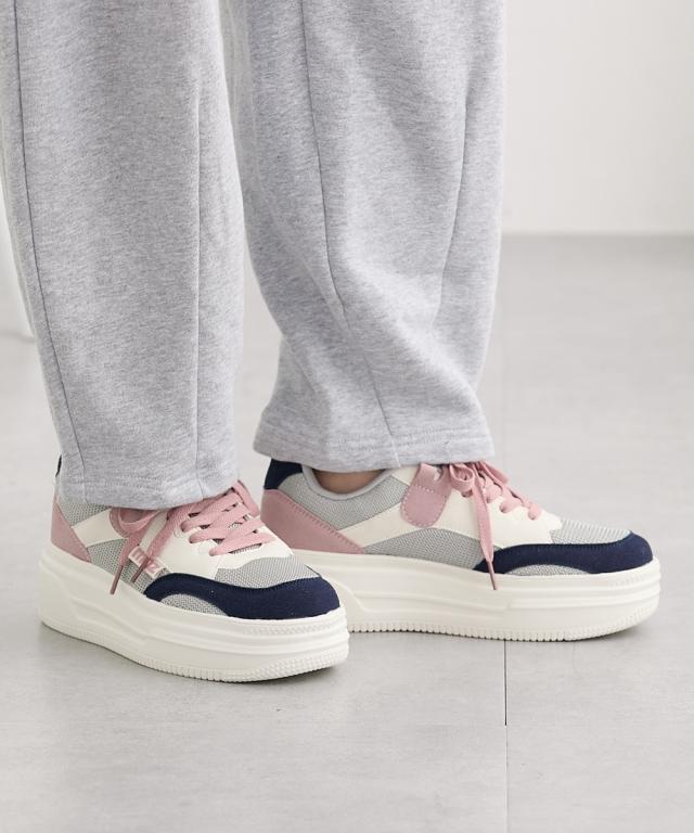 【ゆったり幅広】moz(モズ)厚底レースアップスニーカー(ワイズ4E)