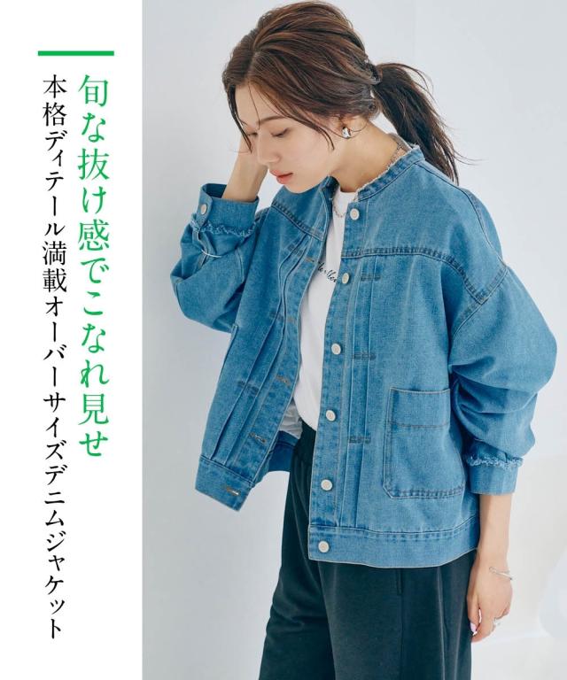 ジャケット アウター レディース ノーカラー オーバーサイズ デニム 春 秋 | S〜M | ニッセン nissen