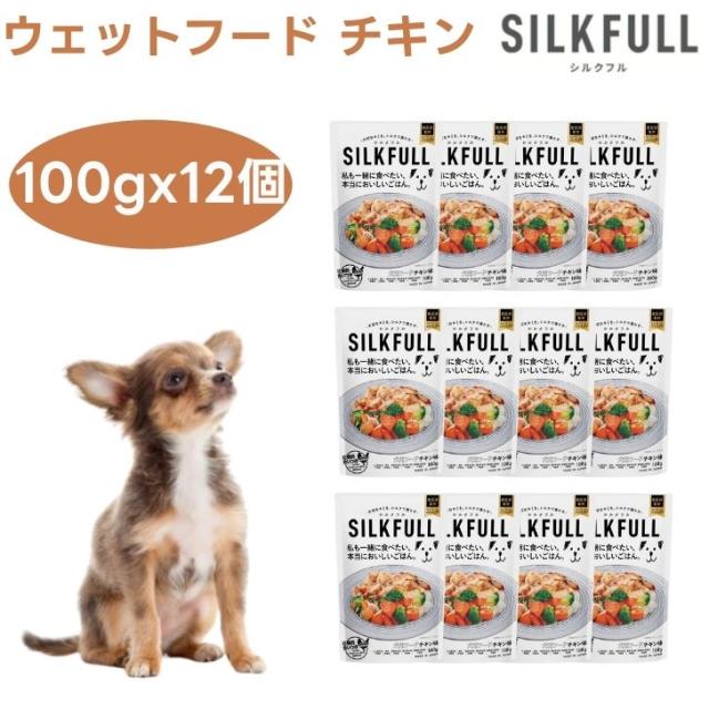 SILKFULL シルクフル 犬用ウェットフード チキン味 100gx12個 ドッグフード 犬 餌 パウチ トッピング 腎臓ケア 低脂質 腸内環境 水分補給