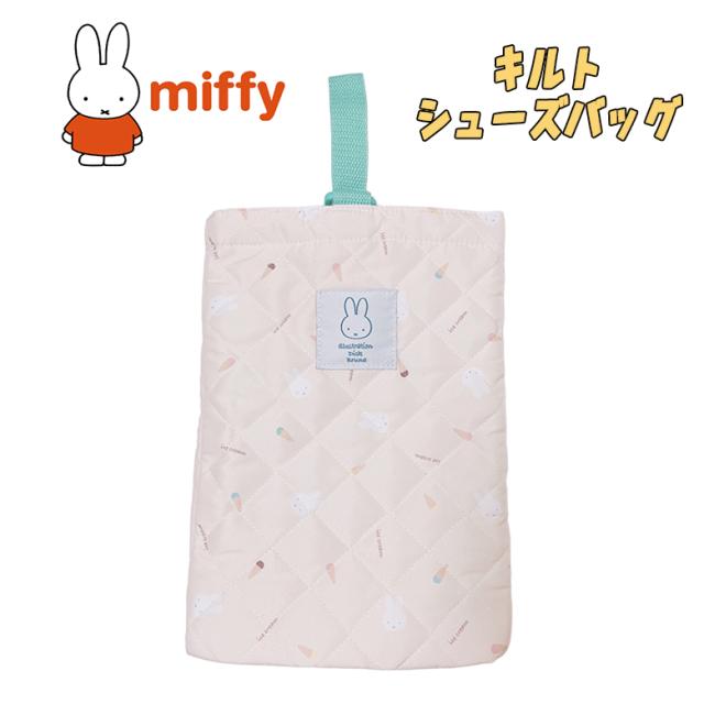 メール便送料無料 miffy ミッフィー 総柄 アイスクリーム柄 キルトシューズバッグ 上履き入れ アイボリー キッズ BN2305IV-8