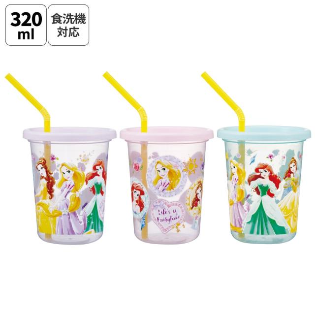 スケーター ストロー付きタンブラー 3個セット プラスチック 蓋付き ふた付き コップ skater SIH3ST ディズニー プリンセス 26年 女の子 女子【タンブラー プラスチック コップ 子供 キャラクター グッズ ミニ】