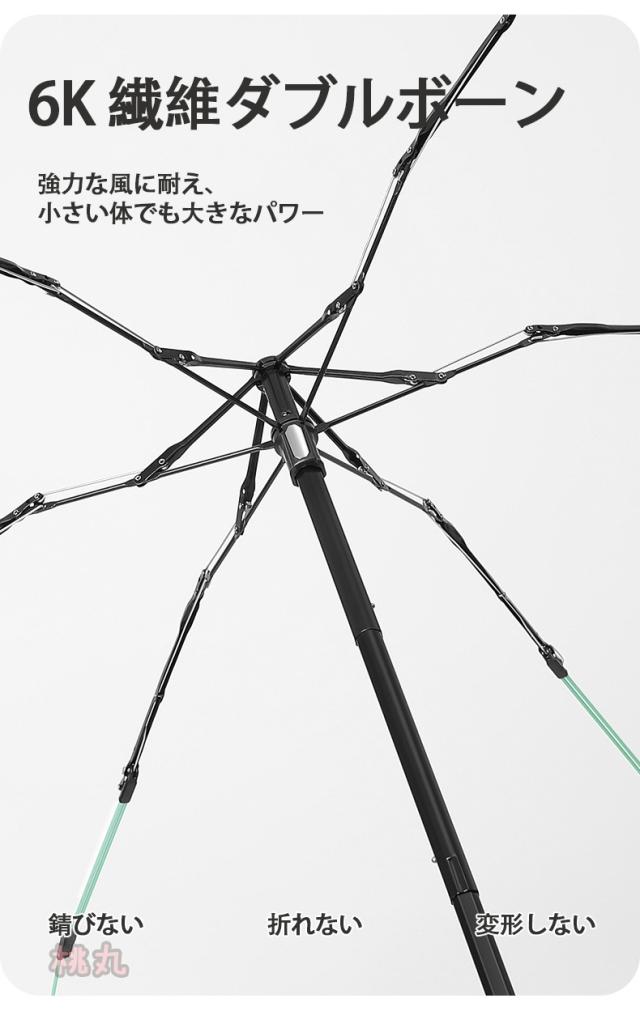 柔軟性と強度を併せ、頑丈で耐久性があることで高強度を実現錆びにくく、一般的な折りたたみ傘よりも耐風性に優れています。強風にあおられても安心!