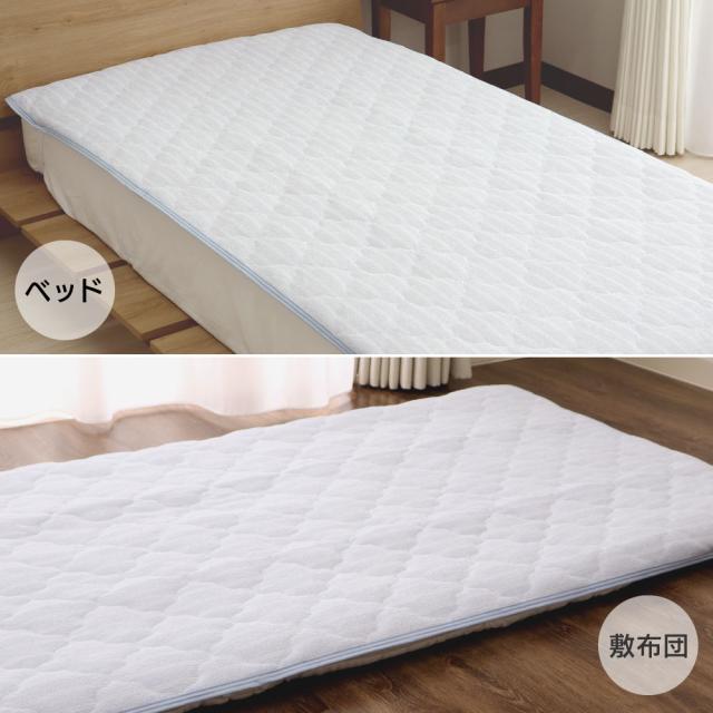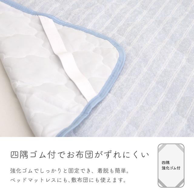 四隅には強化ゴムがついており、着脱が簡単で、お布団もズレにくく快適。敷布団でもベッドでもご使用いただけます。