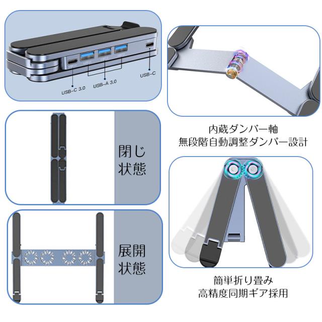 ノートPCスタンド 折りたたみ 台 机上 軽量 コンパクト 冷却 ファン付き 拡張ドック 角度調整 PCスタンド タブレット 持ち運び 卓上 軽量