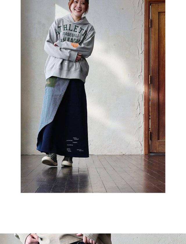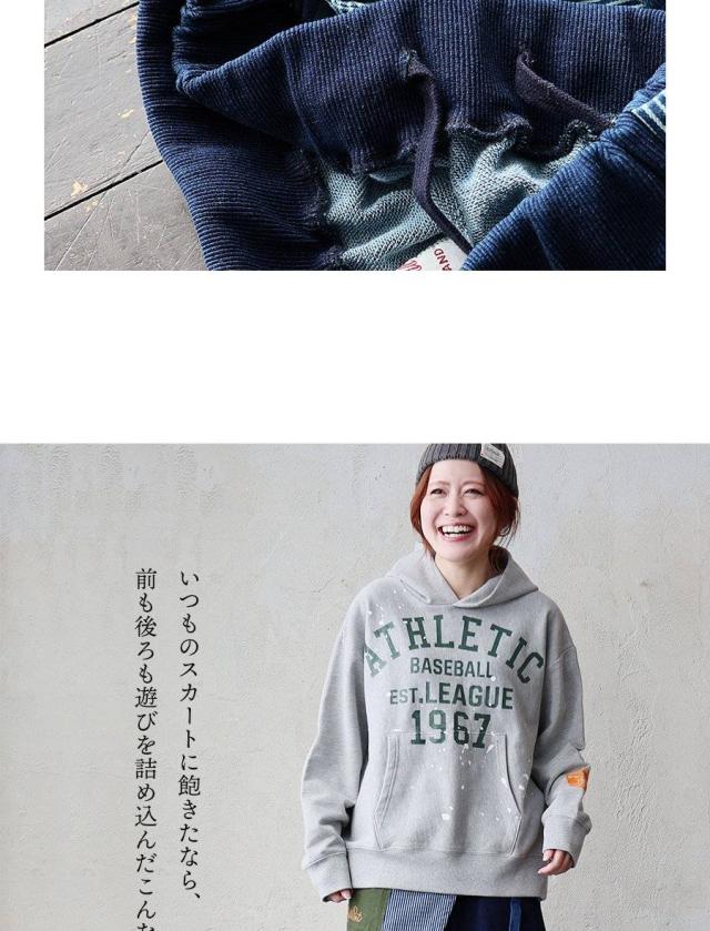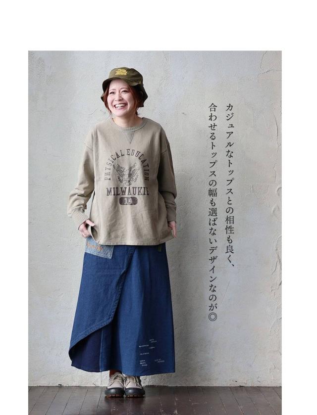 スカート ラップスカート レディース 綿100 コットン ミニ裏毛 異素材切り替え ロゴ ステッチ プリント ワンポイント ウエストゴム ゆったり カジュアル パティ