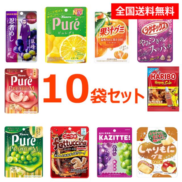 送料無料 10袋セット グミ アソート バラ売り 家庭用 お試し クーポン 常温配送 ポイント消化 板チョコ ばらまき 個包装 人気 高級