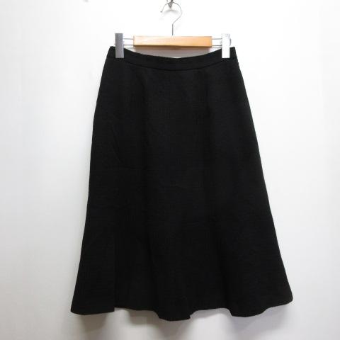 【中古】ジバンシィ GIVENCHY 東京ソワール ジャガード ストライプ フレア スカート 12 黒 ブラック 裏地付き 日本製