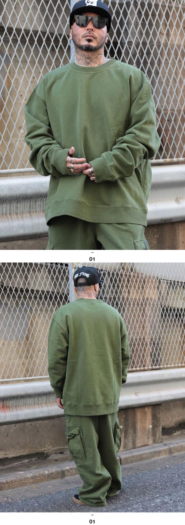 L-3XL オーバーサイズ 裏起毛 ミニマル メンズファッション メンズトレーナー おしゃれ かっこいい ウォッシュド加工 サイドリブ アメカジ ダンス オリーブグリーン