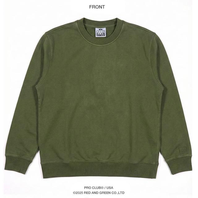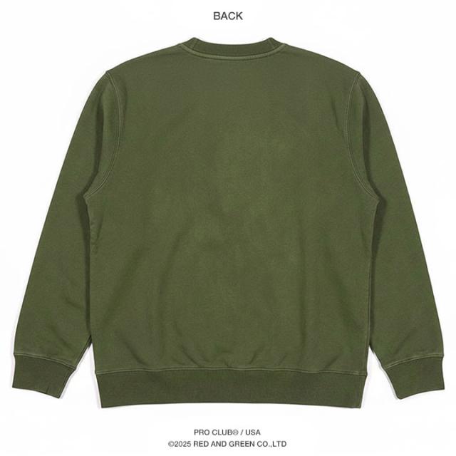 PRO CLUB トレーナー ブランド スケボー 長袖 スウェット メンズ レディース 春秋冬用 オリーブ 大きいサイズ プロクラブ USA トップス 無地 ヴィンテージウォッシュ OD色 ミリタリー ビッグシルエット b系 ヒップホップ ファッション ストリート系 服 2026春 新作 44PC0102