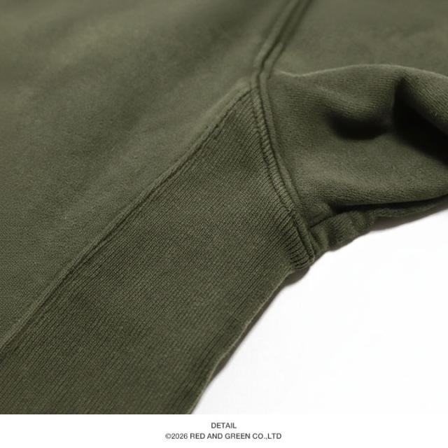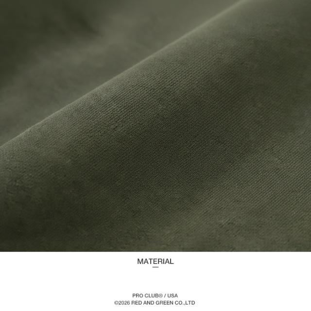 生地は、厚手で柔らかく肌触りが良い快適な着心地のヘヴィーウェイトスウェット(コットン100%)。適度な厚みで使いやすく、重ね着しても着ぶくれしにくいため、シャツやアウターとのコーディネートにも最適です。