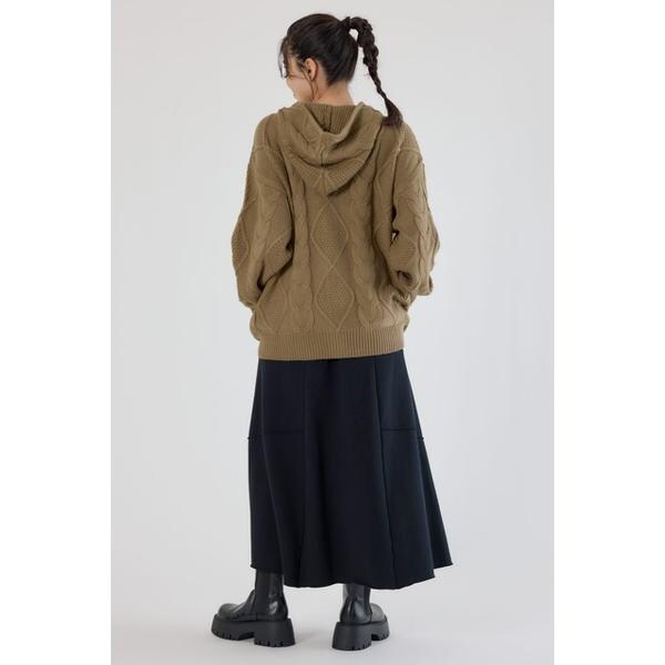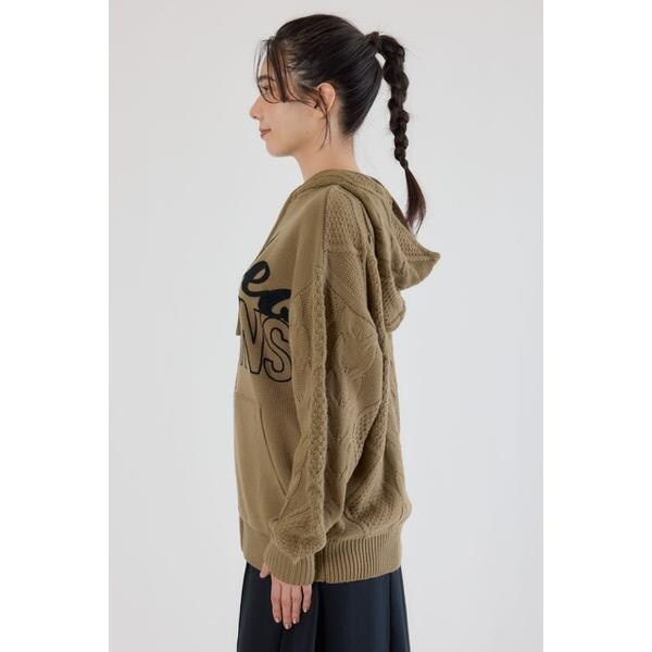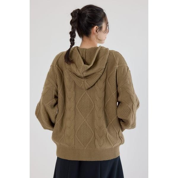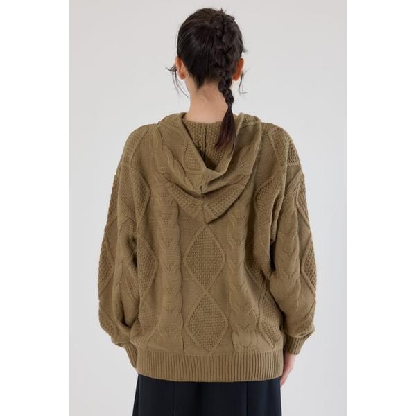 ■ポイント立体感のあるケーブルが目を引くニットジップフーディー。フロントのロゴ刺繍もカジュアル感をアップさせるポイントです。■ディテール柔らかな素材が肌に心地よく馴染み、羽織るだけでリラックス感のあるスタイルを演出します。■スタイリングベーシックなデニムパンツと合わせたスタイルや、スカートとのミックススタイルなど様々なスタイリングに活躍します。■生地※手洗い可能商品※ONE&ONLY札付きしっかりとした厚みのあるニットに柔らかさをプラスし、ケーブルデザインをパーツごとにドッキングして仕上げています。柔らかい綿混のニットのフードデザイン仕様のため、ハンガーに掛けると襟元などが伸び、サイズが変わる原因となります。こまめにハンガーから外すなど、お取り扱いにはご注意ください。ピリングなどが発生した場合は、はさみなどできれいにカットしてください。■透け感:なし■裏 地:なし■伸縮性:なし■光沢感:なし[注意事項]※画像の商品はサンプルです。実際の商品と仕様、加工が若干異なる場合があります。※画像の商品は光の照射や角度、お使いのモニター環境により、実物と色味が異なる場合がございます。※着用、お取り扱いの際は、アテンションタグをご確認ください。