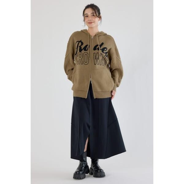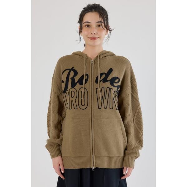 ロデオクラウンズ ワイドボウル(RODEO CROWNS WIDE BOWL)/ロゴケーブルニットジップフーディー