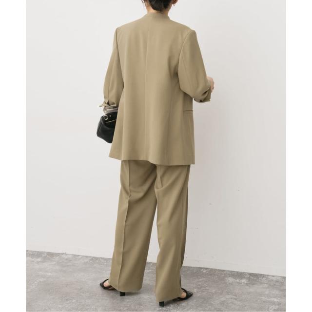 同素材のセットアップ展開で、オケージョンシーンからお仕事スタイルまで幅広く活躍。一枚持っておくと、装いの幅がぐっと広がるジャケットです。