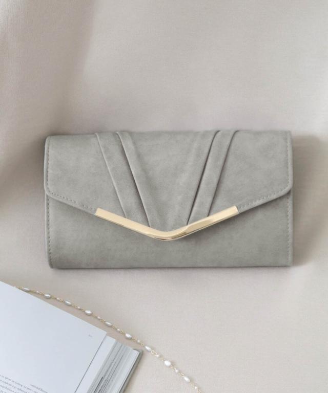 マットな質感の合皮生地にゴールドプレートが映えるクラッチバッグ。