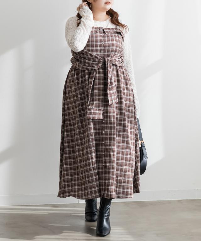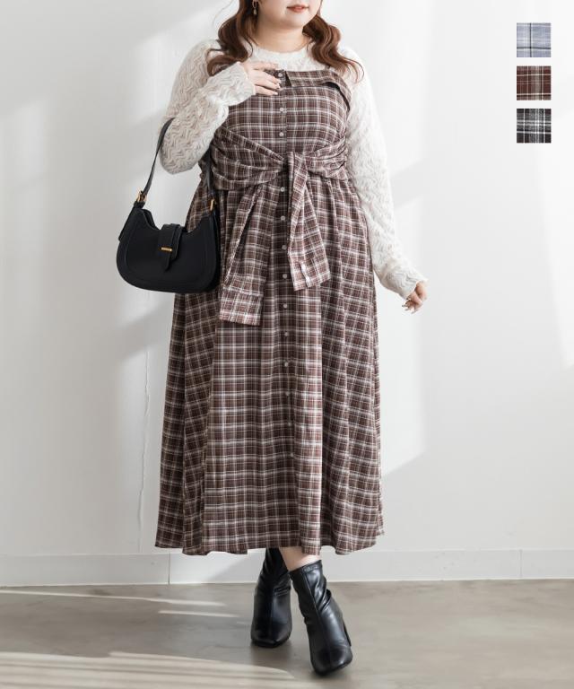 大きいサイズ/レディース/LL/3L/4L/CLETTEオリジナルシャツディテールキャミワンピース