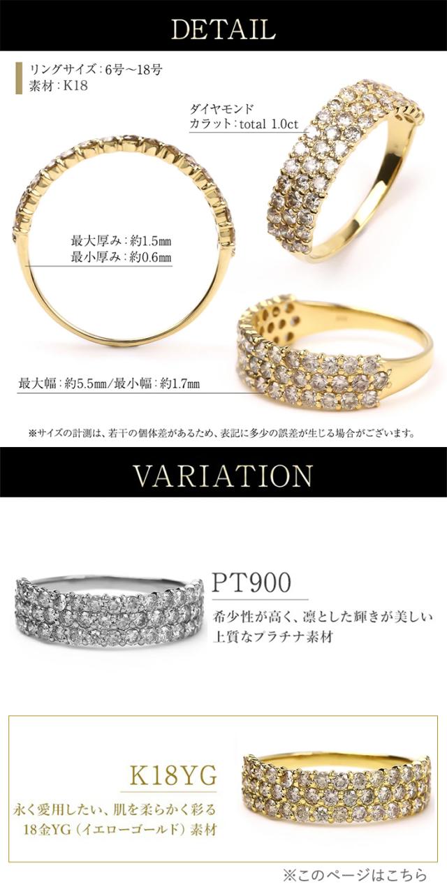 ダイヤモンドをトータル【 1.0ct 】使用した贅沢なダイヤリング。シンプルながら存在感とボリュームのあるデザイン。精巧なカットの美しさだけでなく、光を最大限取り込み、つけ心地にもこだわりました。PT900(プラチナ)と K18(18金)の2種類からお選びいただけます。「 ダイヤの指輪 」は、女性に喜ばれる、人気の指輪。大切な妻へ、奥さんへ、記念日の贈り物やギフト・プレゼントとしてもおすすめです。