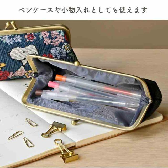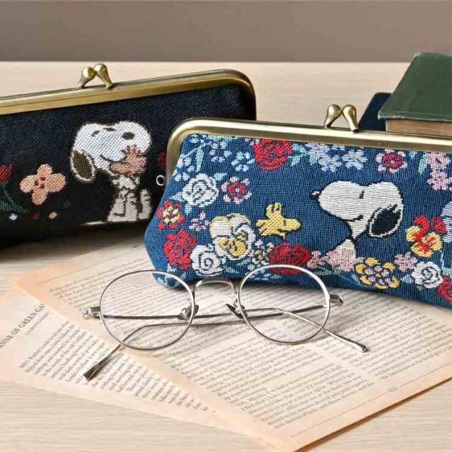 大きく開くがま口で出し入れしやすい、スヌーピーとリトルミィのメガネケース。スリムなペンケースや小物入れとして使っても便利です。上品で大人かわいいゴブラン織りのデザインで、自分用はもちろんプレゼントにも。