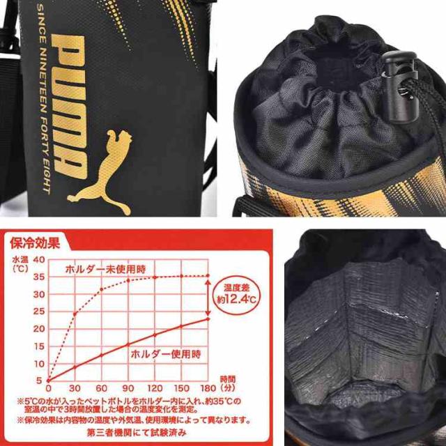 ペットボトルホルダー プーマ PUMA 男の子 子供 保冷 ショルダー 斜めがけ 肩掛け ペットボトルカバー 保冷ホルダー 保冷カバー ボトルホルダー 水筒ホルダー 500 600 650ml 小学生 中学生 遠足 シンプル 黒 ブラック ゴールド 通園 通学 入学 新学期 準備 お出かけ PM548