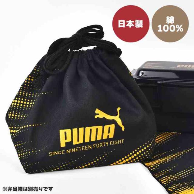 お弁当袋 巾着 プーマ PUMA 男の子 子供 ネームタグ付き 日本製 ランチ巾着 お弁当入れ 巾着袋 ランチ袋 お弁当バッグ 大きめ 小学生 中学生 ジュニア 遠足 給食 綿100% シンプル 黒 ブラック ゴールド 幼稚園 保育園 通園 通学 入園 入学 準備 PM544