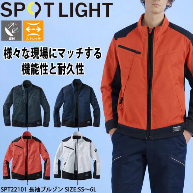 サンエス SUN-S スポットライト SPOTLIGHT 長袖ブルゾン SPT22101 作業服 ストレッチ 帯電防止 春夏 4L・5Lサイズ