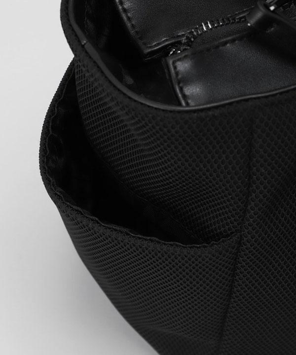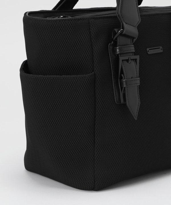 ベルトハンドルやロゴプレートがさりげないアクセントになった、メッシュボンディングカートバッグ。