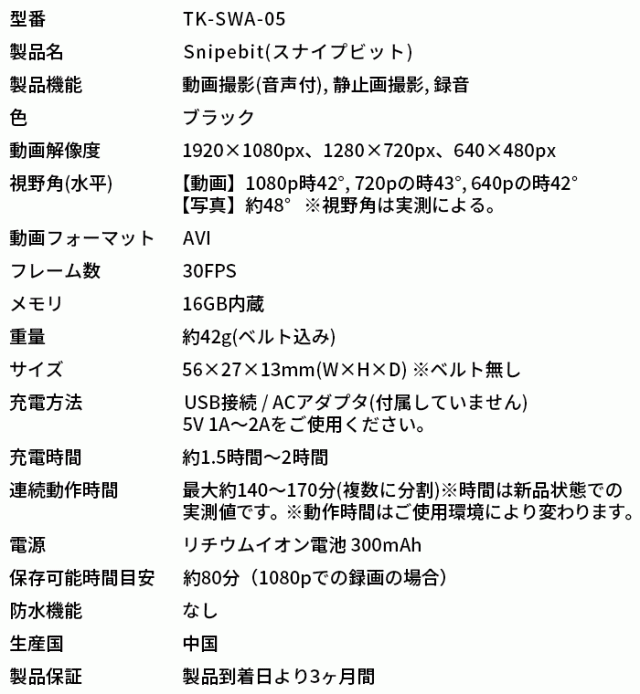 TK-SWA-05(Snipebit)(スナイプビット) | フルHD録画対応スマートウォッチ擬装(偽装)カメラ【小型カメラ】【匠ブランド】【スパイカメラ】【隠しカメラ】