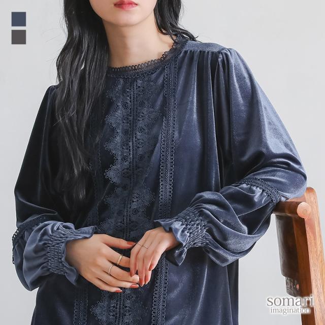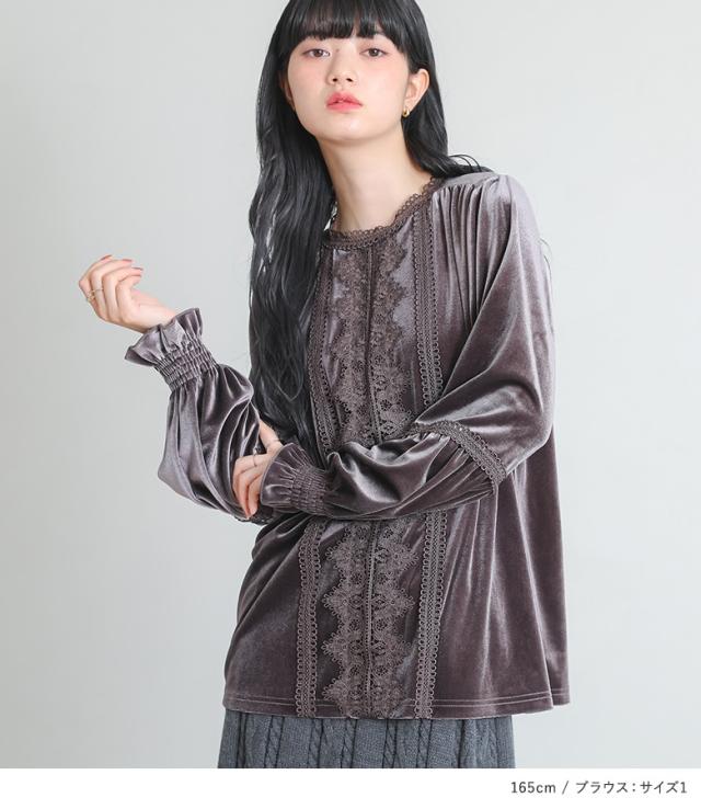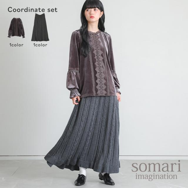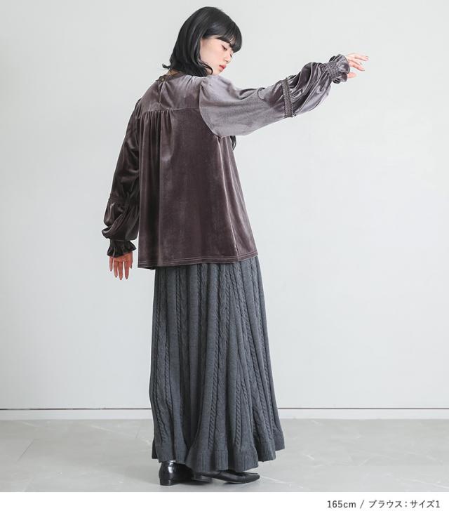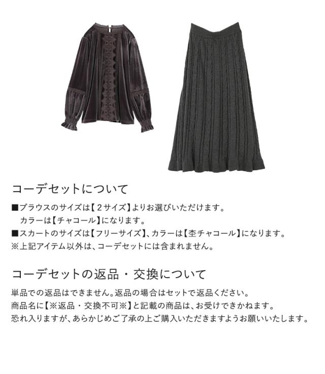 1,000円オフ4日0時迄 【送料無料】『レースベロアブラウス×ケーブルニットフレアスカートコーデ2点SET』【メール便不可】【40】[2点コーデセット 2026 レディース ブラウス 長袖 トップス ベロアブラウス フレアスカート ニット ロング]
