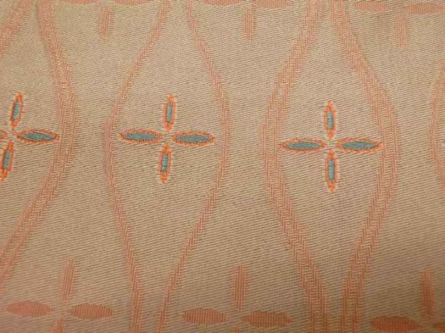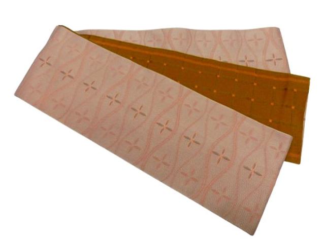 日本製 リバーシブル四寸帯 半幅帯 浴衣帯 半巾帯 細帯 着付け練習にも最適 結び帯 肌色地 立涌文 十字絣 カラシ地 碁盤縞柄 No.82