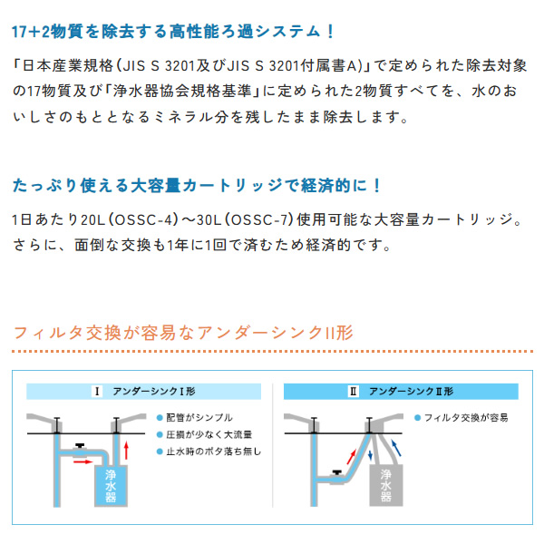 ●フィルタ交換が容易なアンダーシンクII形