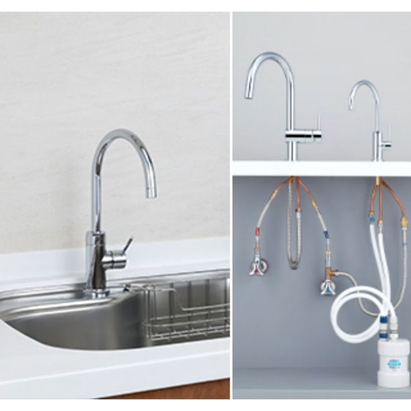 浄水器本体、浄水器専用水栓、ホース他接続部品が含まれています。