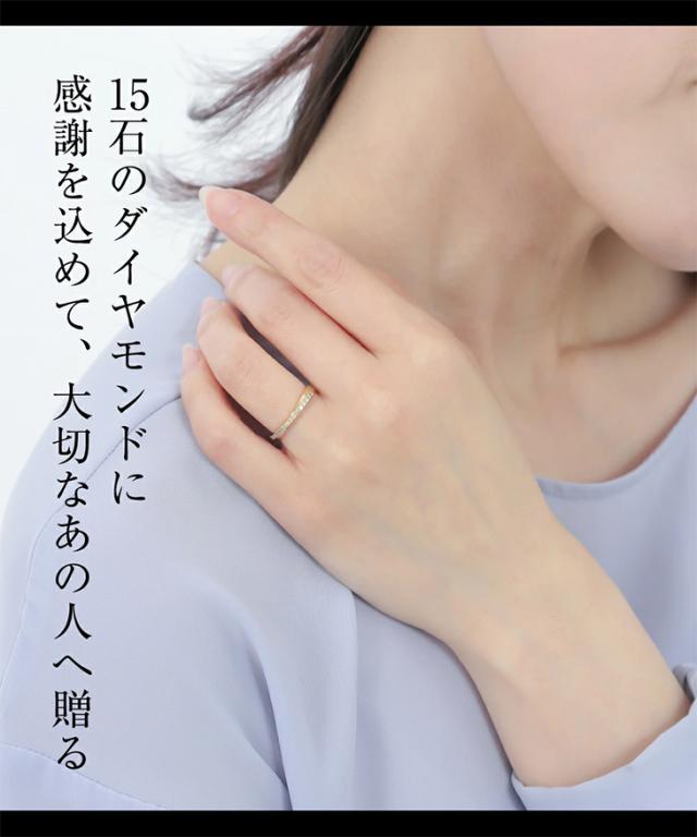 天然ダイヤモンド15石を配置した柔らかなクロスラインは、女性の指を長く、細く見せてくれます。プロポーションの美しさだけでなく、光を最大限取り込み、つけ心地にもこだわりました。