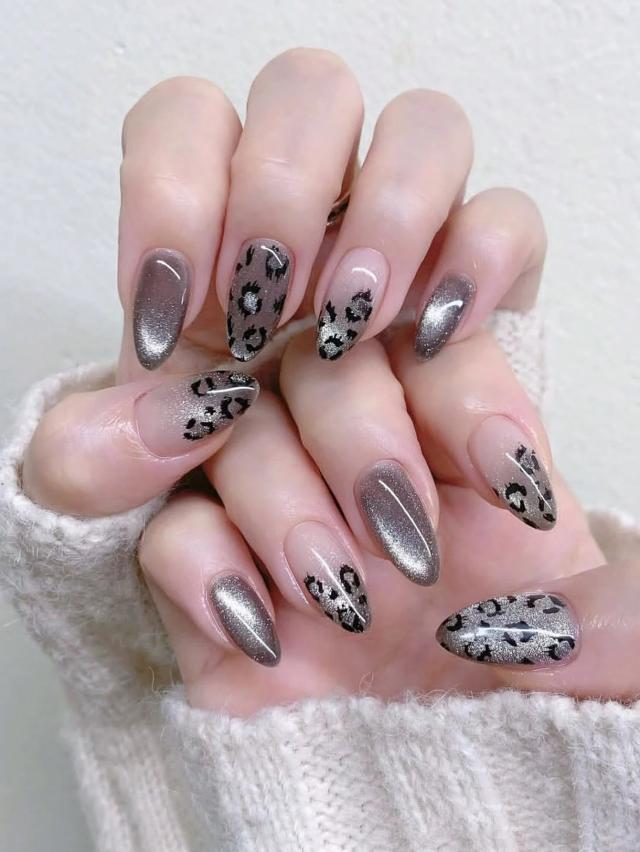 【24枚入り】ネイルアート グラフィック つけ爪を貼る ベストセラー フレンチキャットアイ ネイルステッカー レオパードグラデーション ミニマリストデザイン ミディアムアーモンド型 フルカバレッジ 女性用 日常使い