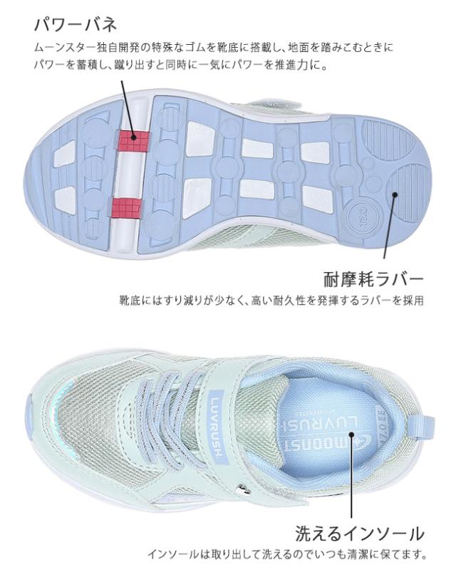 ムーンスター ラブラッシュ スニーカー キッズ 女の子 歩きやすい 走りやすい 履きやすい 疲れにくい 滑らない ローカット マジックテープ ベルクロ 軽量 防滑 2E LV1252 おしゃれ かわいい ジュニア 子供 小学生 通学 運動靴 シューズ 靴