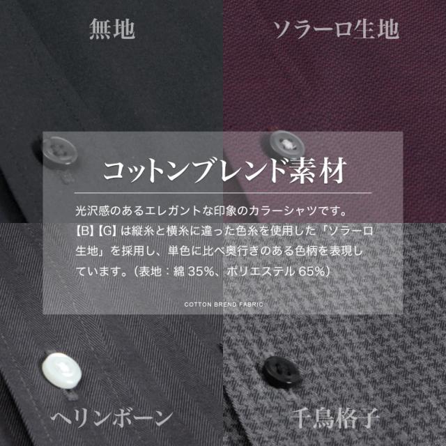 格式あるセレモニーシーンからパーティー、フォーマルなビジネススタイルまで幅広く活躍する、メンズ用長袖カラードレスシャツ。すっきりとしたシルエットと上質な素材感が、着る人の品格を引き立てます。 衿型は、エレガントでクラシックな印象のワイドカラーと、程よくカジュアルさを備えたボタンダウンの2タイプをご用意。シーンやスタイリングに合わせてお選びいただけます。 カラーは、ブラック・ワインレッド・ネイビー・グレーなど、フォーマルに映える濃色系8色展開。特にワインレッドとネイビーには、縦糸と横糸に異なる色糸を使用したソラーロ生地を採用しました。光の当たり方によって表情が変わる、上品な光沢感が特徴で、エレガントかつ個性的な印象を演出します。 セレモニーや特別な日の装いに、自分らしい個性と洗練を添える一着です。