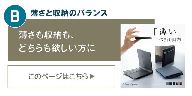 ポケットにすっきり収まる極薄二つ折り財布。見た目以上の収納力で、カードはしっかり10枚収納。大きく開くマチ付き小銭入れに、仕切り付きのお札入れ。キャッシュレス派はもちろん現金派の方にもお勧めできます。