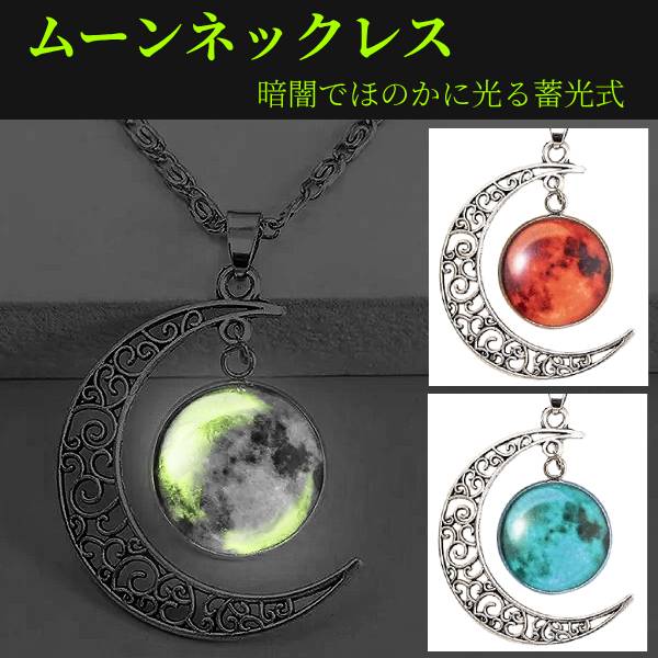 【売り切り】月 ネックレス アクセサリー ムーン moon 三日月 満月 天体 夜光 蓄光 発光 お洒落 ペンダント 宇宙