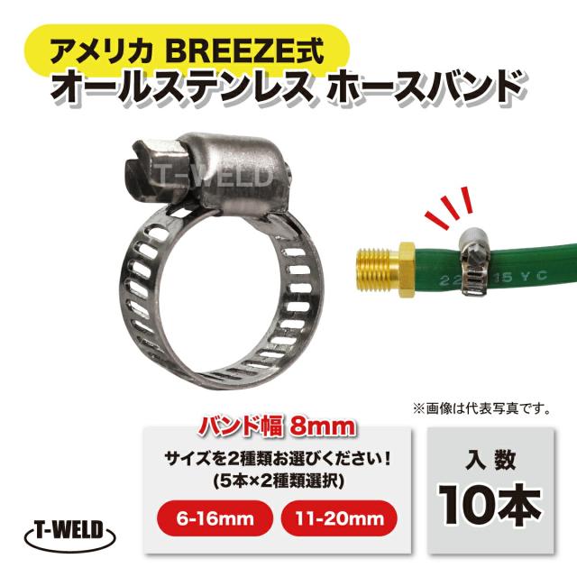 オールステンレス ホースバンド ホースクランプ 幅8mm ( 6-16/11-20mm ) 10本セット 適合:BREEZE ジュビリーバンド インボイス付領収書発行可