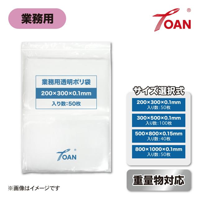 TOAN 透明ポリ袋 業務用 サイズ: 200×300mm 厚み: 0.1mm 入数: 50枚 重量物対応 特厚 極厚 厚手 産業廃棄物 ポリ袋 インボイス対応領収書発行可
