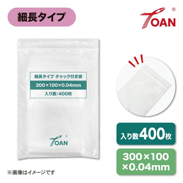 TOAN チャック付き袋 細長タイプ サイズ: 300×100mm 厚み: 0.04mm 入数: 400枚 ( チャック袋 チャック付ポリ袋 ジップ式 ビニール袋 ) あす楽 送料無料