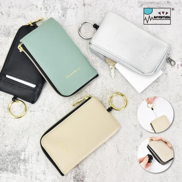 キーケース パスケース PUレザー 小物入れ ICカード スマートキー リール 車 シンプル 無地 合皮 多機能 コンパクト 丈夫 新生活 新学期 ギフト プレゼント ラッピング AVVENTURA