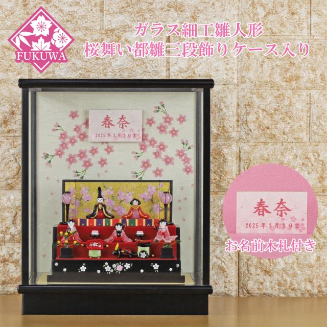 ガラス細工 雛人形 ひな人形 コンパクト 雛 (桜舞い雛 三段飾り ガラスケース入り 891) お雛様 五人飾り 桃の節句 初節句 飾り おしゃれ かわいい