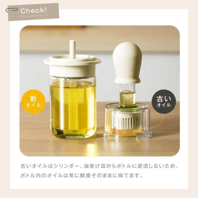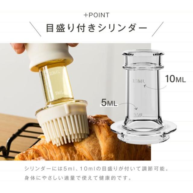 シリンダーには5ml・10mlの目盛り付きで適量調整も可能。油の使いすぎを防ぎ、健康的な料理に役立ちます。