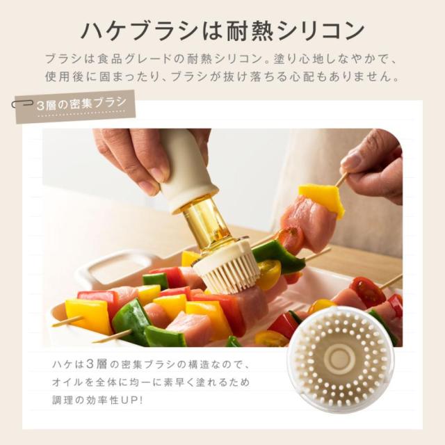 ブラシ部分は食品グレードの耐熱シリコン製。3層構造でオイルをしっかり保持し、均一に塗布できます。