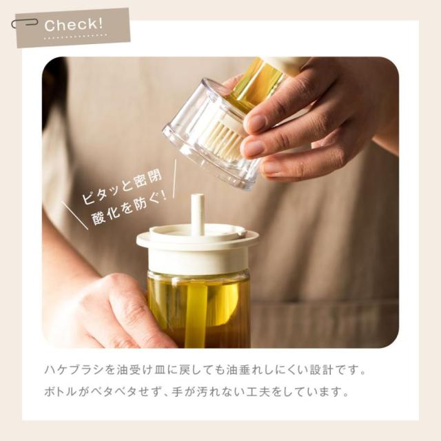 フライパンに油をひく、肉や魚にオリーブオイルを塗る、パンやお菓子に卵液を塗るなど、料理の幅が広がります。