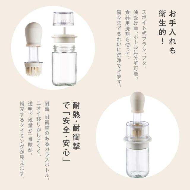 特徴:スポイト式吸引、5ml・10ml目盛り付き、耐熱シリコンブラシ、分解洗浄可能、密閉設計