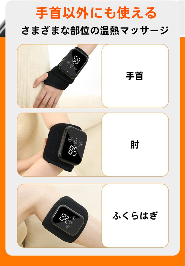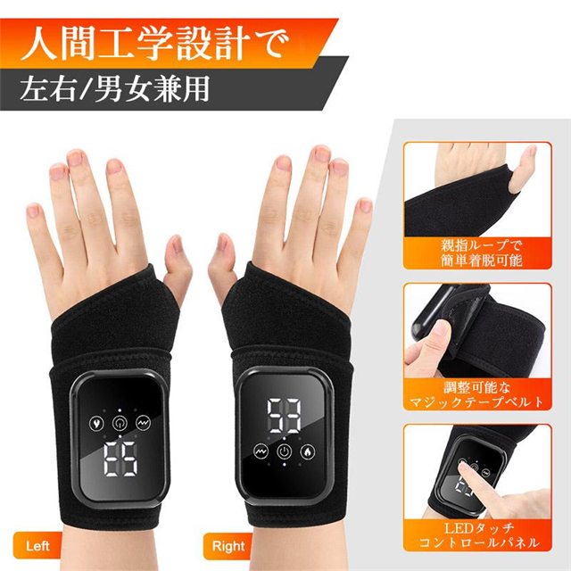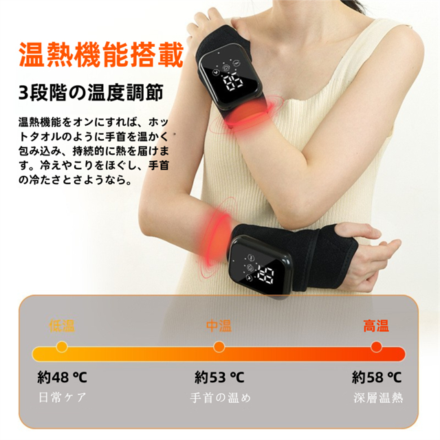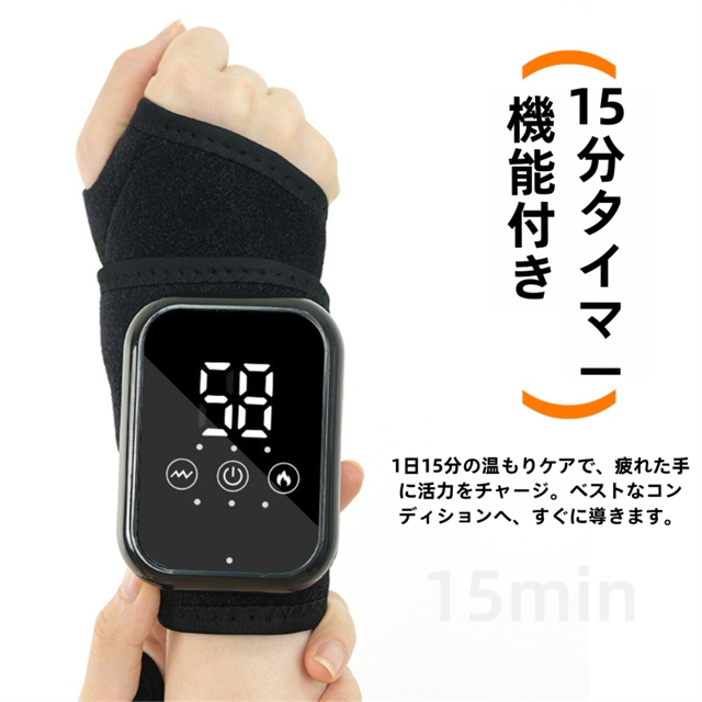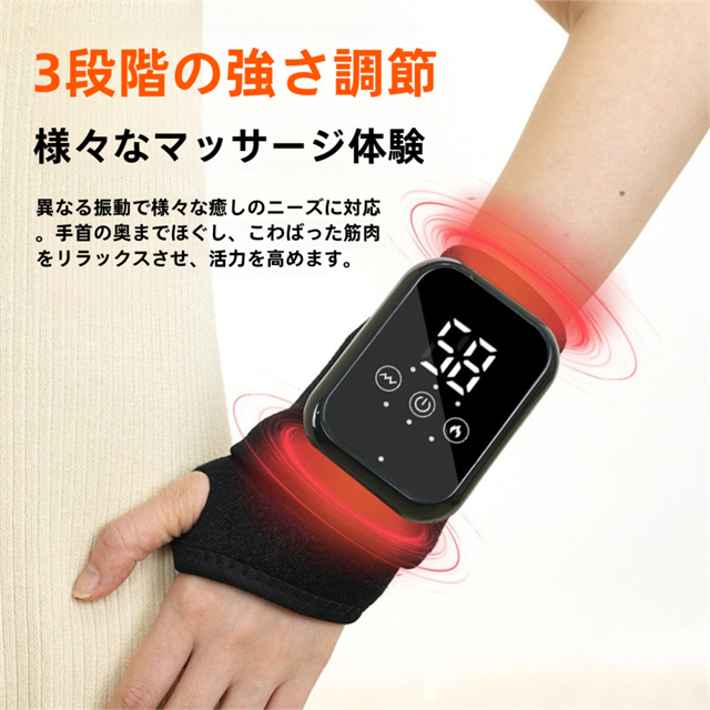 手首マッサージャー 手首サポーター ハンドマッサージャー マッサージ機 温熱リストバンド 男女 左右兼用 腕 手首ガード 手首保護 タイマー機能付き