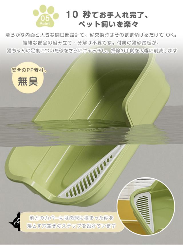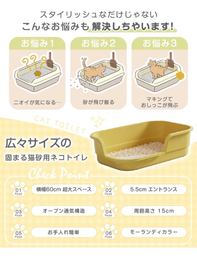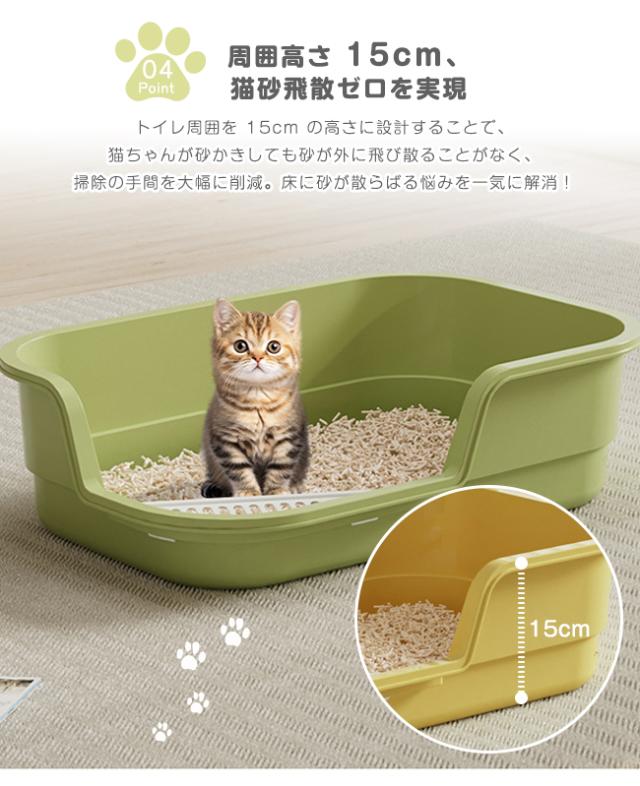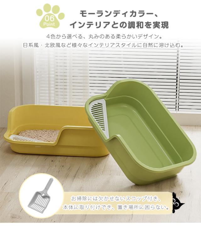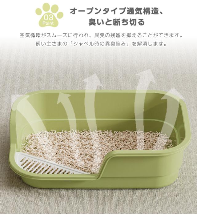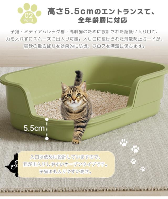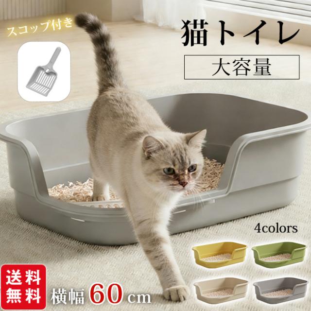 冬新作 猫用トイレ 大型 におい対策 おしゃれ 猫 ねこ ネコ スコップ付き 飛び散り防止 バッフル 大きめ シンプル お手入れ簡単 こねこ 子猫 高齢猫 猫砂 オープンタイプ ポイント消化