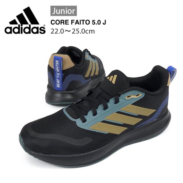 アディダス コアファイト 5.0 J ローカット スニーカー シューズ キッズ・ジュニア 22 22.5 23 23.5 24 24.5 25 ブラック adidas CORE FAITO JQ5690 子ども 子供 男児 男の子 女児 女の子 紐 レースアップ 運動靴 黒 【箱アウトレット】sh2456
